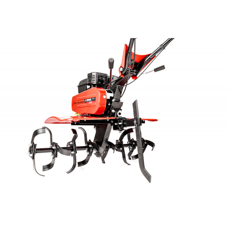 Glebogryzarka spalinowa GL500 to mocna i zwarta maszyna wyposażona w silnik z tuleją żeliwną, olejowym filtrem powietrza o poj. 196 cm3 osiągający moc 4.3 kW / 3600 obr. Skrzynia biegów posiada dwa biegi do przodu oraz jeden bieg wsteczny. W cenie maszyny w zestawie znajdują się duże pompowane koła dzięki, którym możemy szybko przekształcić maszynę w mikro ciągnik mogący współpracować z obsypnikiem, pługiem czy wyorywaczem.