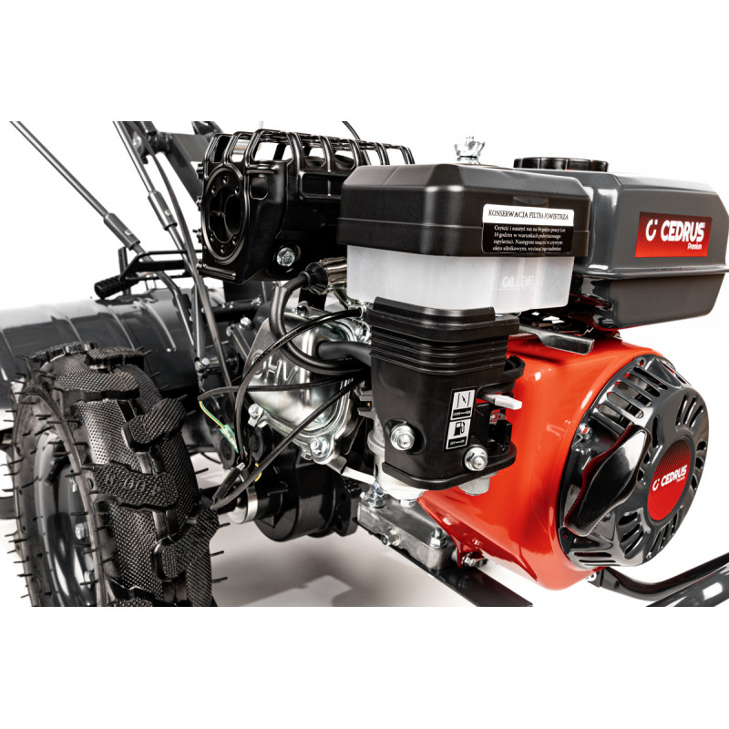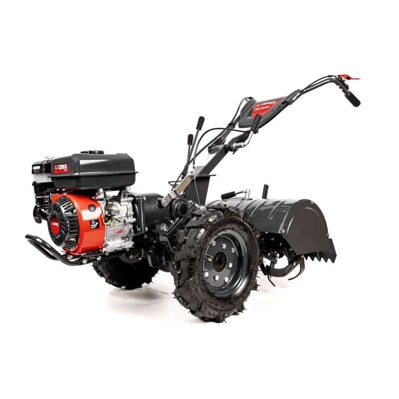 Cedrus Premium GLX650 to profesjonalne, wydajna maszyna zaprojektowane do intensywnej pracy, spulchniania i uprawy gleby na większych powierzchniach (do około 5000 m²). Jest to model przeciwbieżny z napędem na koła, co zwiększa komfort pracy i zmniejsza wysiłek operatora